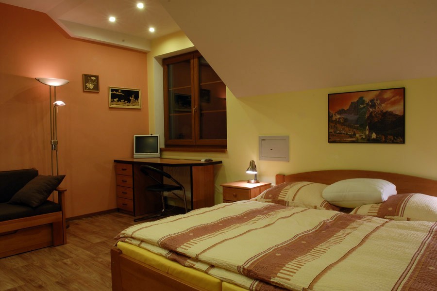 Penzion nabízí ubytování ve dvoulůžkových, čtyřlůžkových pokojích + přistýlkách. Každý pokoj má vlastní sociální zařízení, kuchyň, TV, lednici, mikrovlnou troubu, varnou konev a klimatizaci. Součástí penzionu je uzamykatelná garáž pro motocykly a jízdní kola.