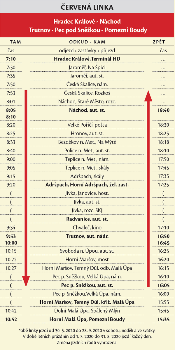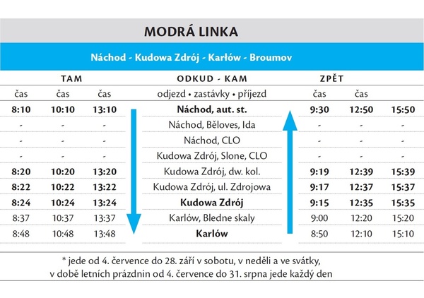 W lecie można korzystać z cyklobusów, które zawiozą Państwa do atrakcyjnych miejsc turystycznych i znów z powrotem. Rowery można wypożyczać wprost na dworcu kolejowym Czeskich Kolei (České dráhy) w stacji Czeska Skalice (Česká Skalice). Wypożyczony rower należy wrócić znów w Skalicy (Skalice) lub na stacjach Czerwony Kostelec (Červený Kostelec) i Nachod (Náchod).