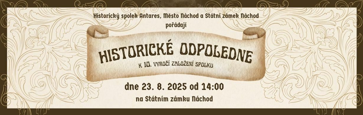 Přijďte oslavit 10. výročí založení Historického spolku Antares na velkolepou historickou akci plnou zážitků, která se uskuteční v sobotu 23. srpna 2025 od 14:00 na Státním zámku Náchod.