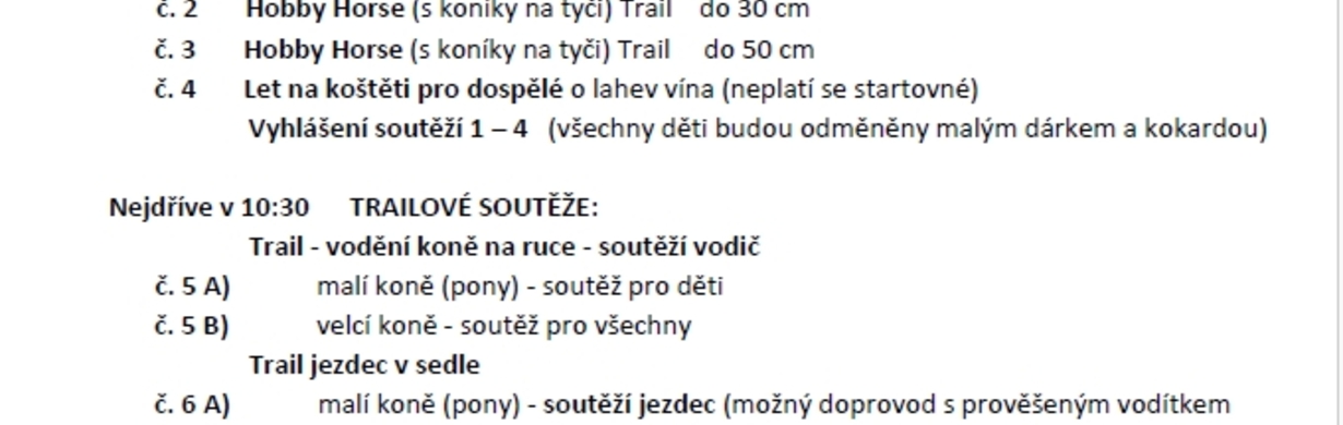 Přijďte na Jezdecké hry do Equicentra v Josefově 1. května 2025. Soutěže pro děti i dospělé zahrnují Hobby Horsing a skokové soutěže. Přihlášky do 27. dubna. Startovné 300 Kč. Všichni soutěžící budou odměněni!