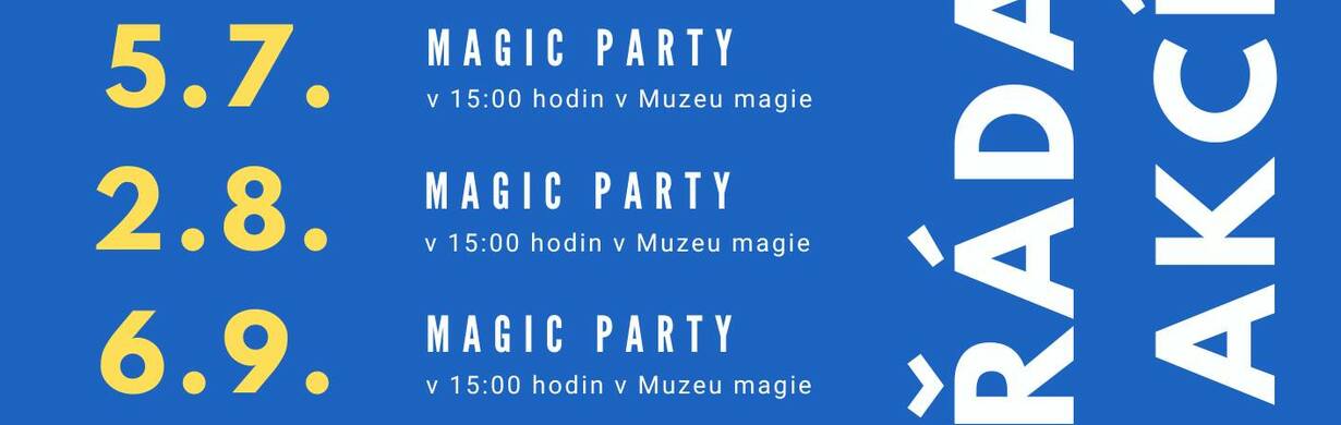 KALENDÁŘ AKCÍ V MUZEU KOUZEL 03. 05. 2025 - 01. 11. 2025 Termíny kouzelnických představení v Muzeu kouzel.