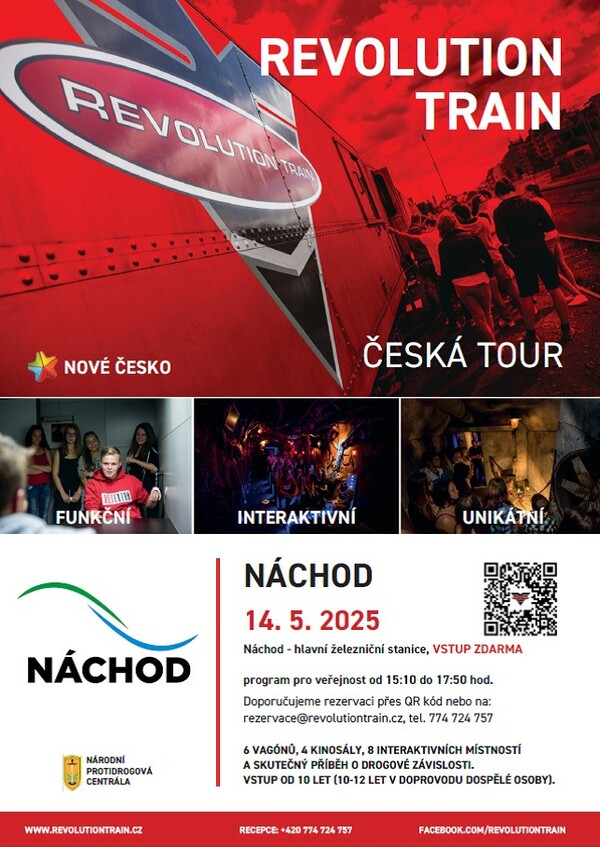 Ve středu 14. května 2025 zavítá na vlakové nádraží v Náchodě unikátní preventivní projekt Revolution Train, který využívá smyslový prožitek a interaktivitu k účinnému boji proti drogové závislosti.