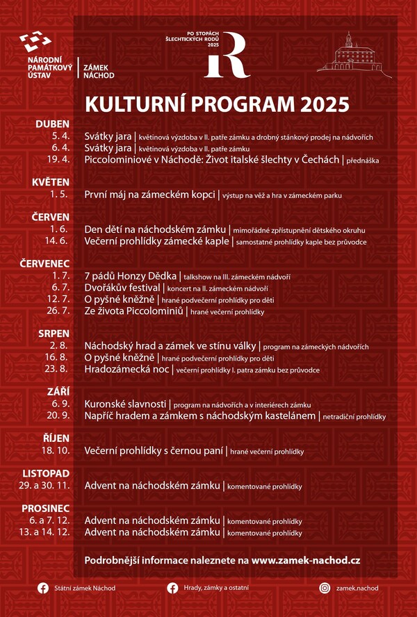 Státní zámek Náchod vás srdečně zve na celou řadu kulturních akcí, které se budou konat v průběhu celého roku 2025.