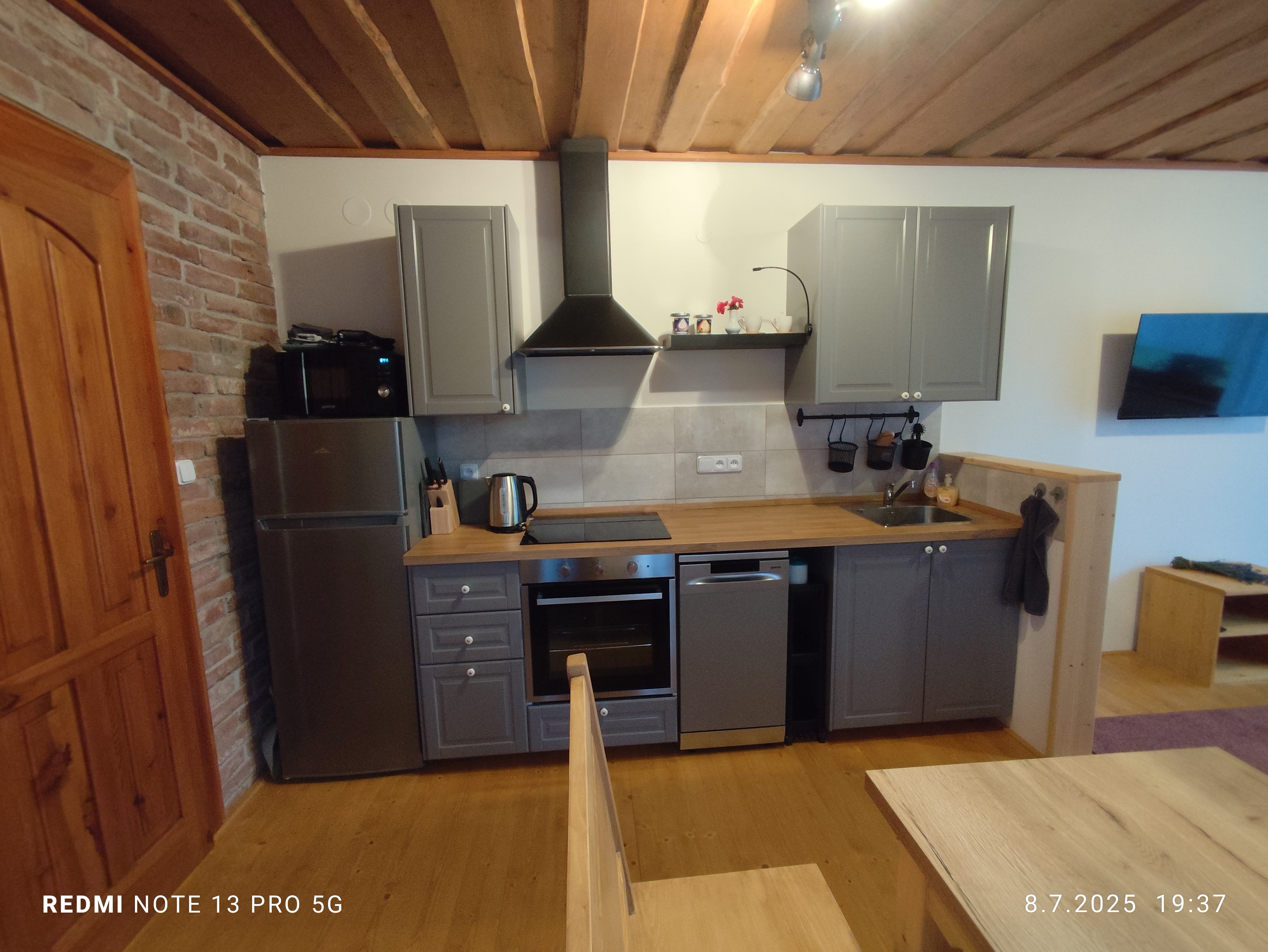 Stravování: Apartmán má svoji vlastní plně vybavenou kuchyň. Vybavení apartmánu Apartmán nabízí plně vybavenou kuchyni se vším, co potřebujete k přípravě domácích jídel –varnou desku, troubu, rychlovarnou konvici, kávovar Nespresso, lednici s mrazákem, nádobí, pánve, myčku a mnoho dalšího. K dispozici jsou utěrky, houbičky, jar na nádobí, tablety do myčky. V jídelně jsou dvě stylové dřevěné lavice a velký jídelní stůl.