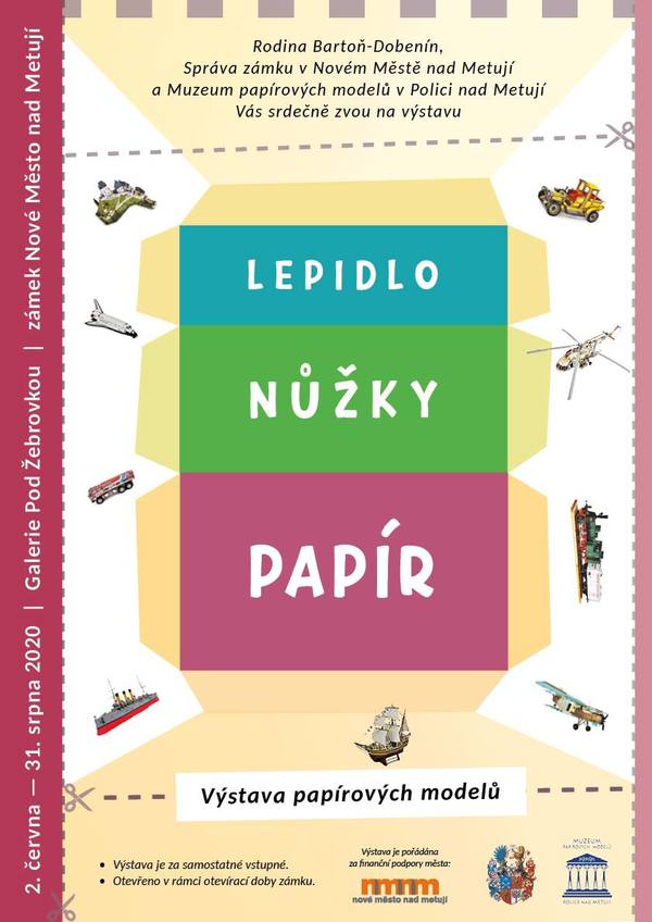 Na zámku v Novém Městě nad Metují se uskuteční od 2. června do 31. srpna výstava papírových modelů s názvem Lepidlo, nůžky, papír.