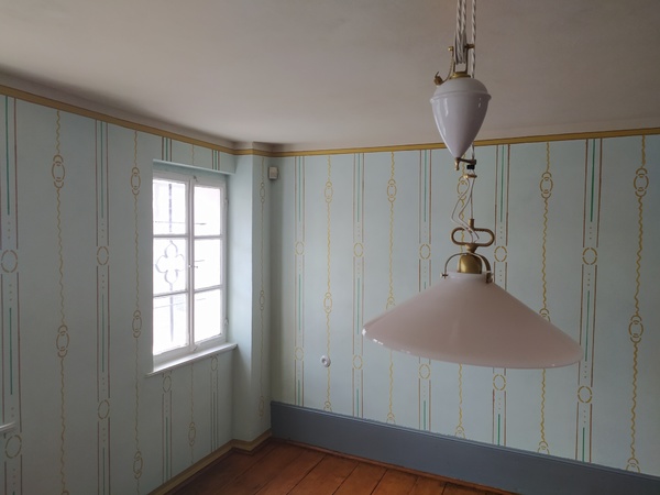 památkářů odkryta zajímavá dobová výmalba. Předpokoj v podkroví domku byl