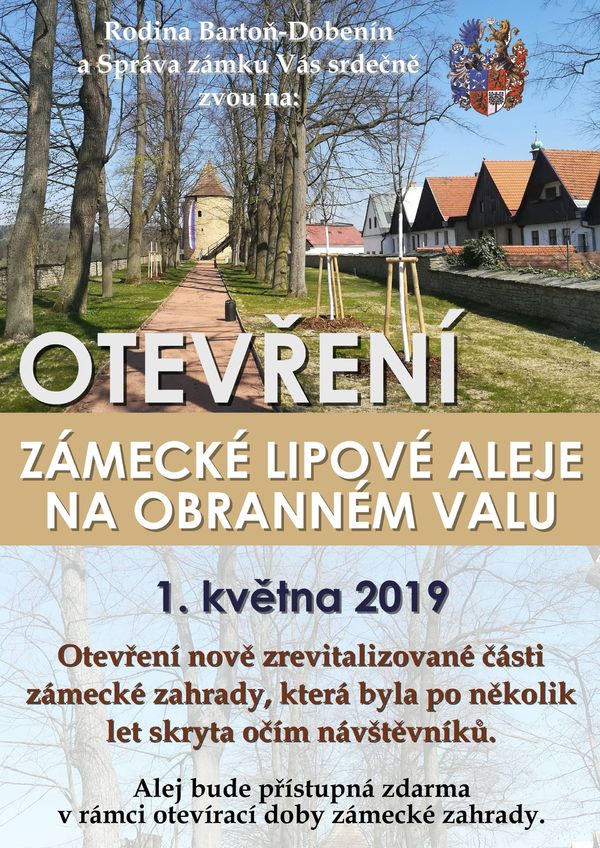 V loňském roce rodina Bartoň-Dobenín spolu se Správou zámku intenzivně pracovala na realizaci projektu s názvem „Revitalizace prostoru valu a lipové aleje v areálu zámku Nové Město nad Metují“. Tento projekt spolufinancovala Evropská unie. Některé stromy ve špatném stavu bylo nutné z důvodu bezpečnosti pokácet, tři nejstarší lípy zde ale i nadále budou představovat svědectví dob dávno minulých. Díky nově vysazeným kusům počet dřevin oproti dřívějšku vzrostl. V prostoru aleje byla restaurována socha sv. Václava, vznikly zde nové mlatové cestičky a byly vysazeny nové rostliny, například hortenzie. Novinkou bude osvětlení aleje, budovy špýcharu i věže Zázvorky, dále přítomnost bezpečnostní kamery a rozvod vody pro zavlažování. Práce byly ukončeny závěrem listopadu 2018. Celkové náklady přesáhly tři miliony korun a devadesát pět procent částky uhradila výše uvedená dotace.