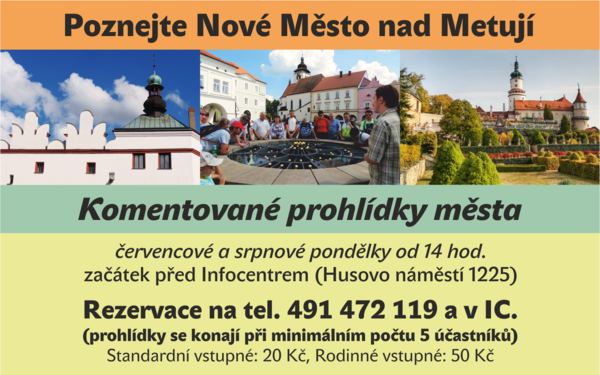 Každé prázdninové pondělí se v Novém Městě nad Metují uskuteční komentované prohlídky města. Návštěvníci se zábavnou formou seznámí se zajímavostmi z jeho bohaté historie.
