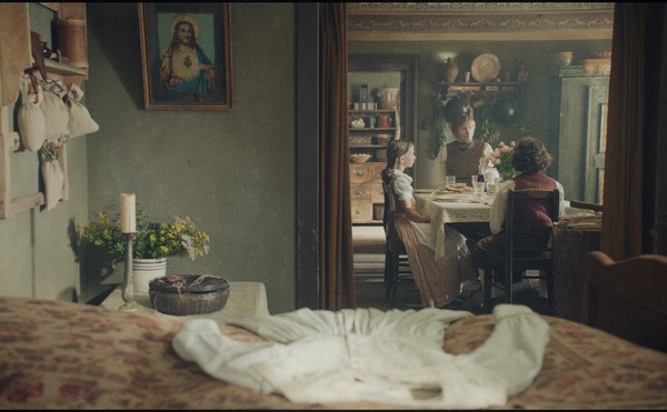 Jak je patrné, filmařům nejde o autentičnost místní, ale spíš estetickou. Proto si krásné náměstí v Novém Městě nad Metují vybrali pro natáčení dvou scén, jež jsou v seriálu zasazeny do Domažlic. Božena Němcová zde potká matky svých svěřenkyň a dotazuje se, proč k ní nepřišly na vyučování. Ženy pobouřeně odpoví, že je neděle a mají tak být v kostele a věnovat se domácím pracem. Mezi oběma stranami dojde k ostré výměně názorů na úlohu dívek ve společnosti. Pokud bychom se na místo oné rozmíšky chtěli podívat, stačí se vydat k podloubí u novoměstského kostela Nejsvětější Trojice.
