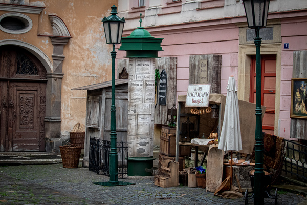 Pokud se od tohoto domu vydáme směrem ke kostelu sv. Mikuláše, můžeme rozpoznat místo natáčení pohřbu, kterého se manželé Němcovi zúčastnili. Lucerny a stánek s preclíky zde budeme hledat marně. Přesto pravděpodobně v těchto místech je natočena scéna, ve které se Božena Němcová (Aňa Geisslerová) postaví do cesty kočáru s koňmi a pronese, že „kůň na člověka nestoupne“.