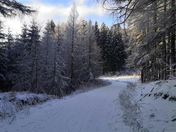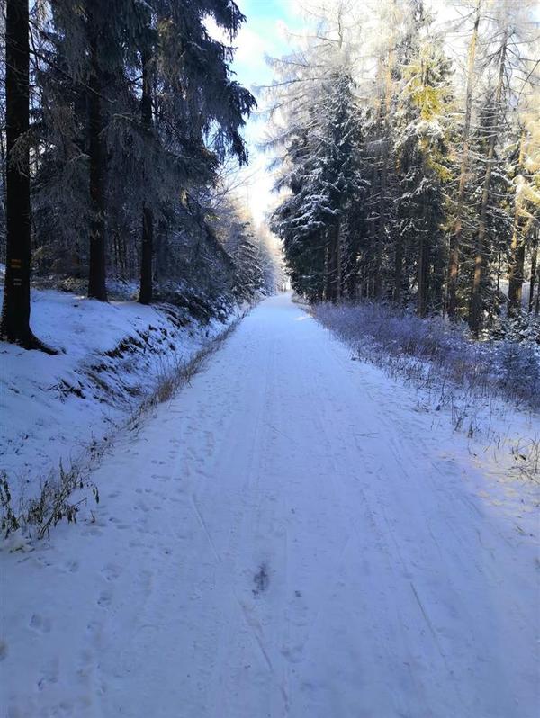 První letošní skol z Jestřebích hor v roce 2020. Pro nedočkavce a příznivce běžkařského sportu možnost prvního svezení z Odolova k Bílému Kolu po Panské cestě bez strojové úpravy. Podklad je led, na tom malá vrstva sněhu (prašanu). Na starších klasičkách dost dobré první sklouznutí. Bruslení bych moc nedoporučoval, i když už to někdo zkouší. Strhnete si hrany. Stačilo by 10 - 15 cm a mohli bychom vyrazit se skútrem.