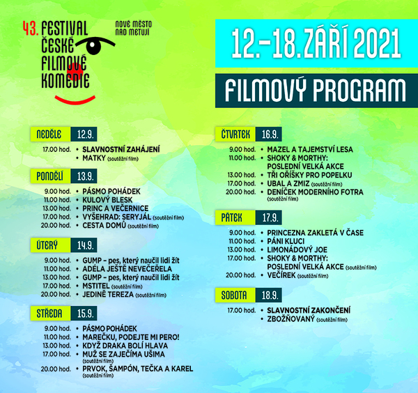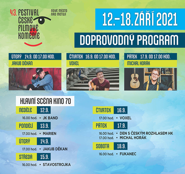 Po roce Nové Město nad Metují opět ožije smíchem. 43. ročník festivalu české filmové komedie v novoměstském Kině 70 nabídne v půlce září 12 nových českých komedií a další filmový i doprovodný program.