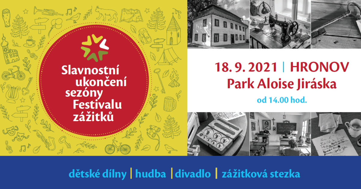 Pojďte s námi v sobotu 18. září 2021 společně uzamknout letošní, již třetí sezonu Festivalu zážitků. Sejdeme se v Hronově, městě s tradicí ochotnického divadla.