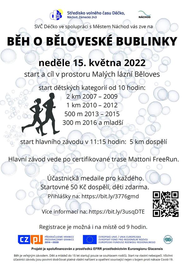 Decko Nachod ve spolupráci s městem Náchod si vás dovoluje pozvat na 2. ročník BĚHU O BĚLOVESKÉ BUBLINKY.