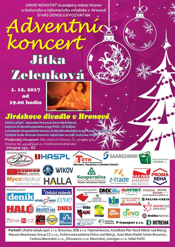 David Novotný za podpory Města Hronov a KIS Hronov pořádá benefiční adventní koncert.