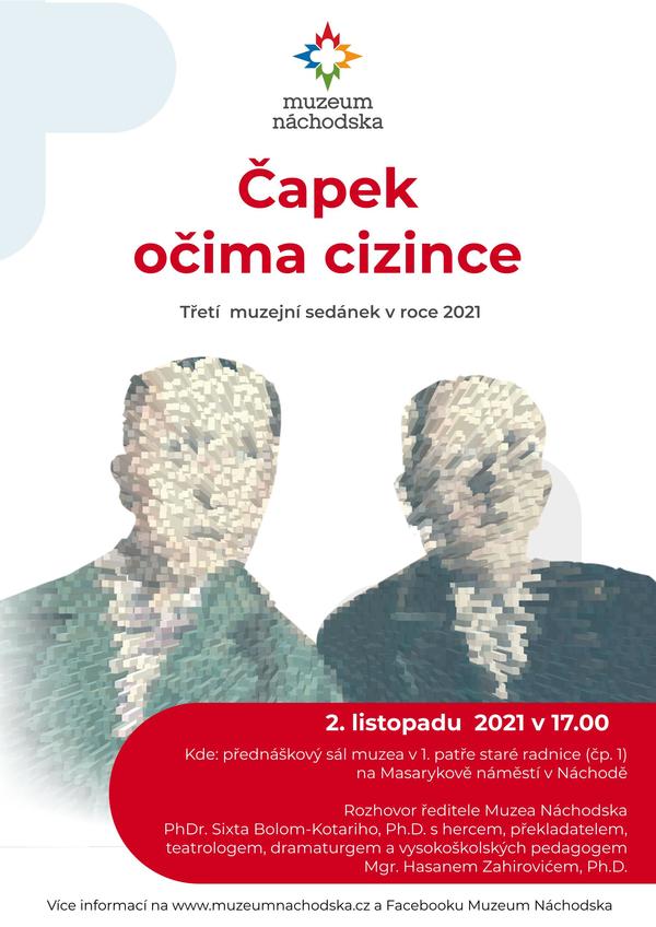 Srdečně zveme na besedu ředitele Muzea Náchodska s hercem, překladatelem, teatrologem, dramaturgem a vysokoškolským pedagogem Mgr. Hasanem Zahirovićem, Ph.D. nazvanou Čapek očima cizince. Uskuteční se v úterý 2. listopadu 2021 v přednáškovém salonku Muzea Náchodska v budově Staré radnice čp. 1 na Masarykově náměstí v Náchodě. Začátek v 17 hod.