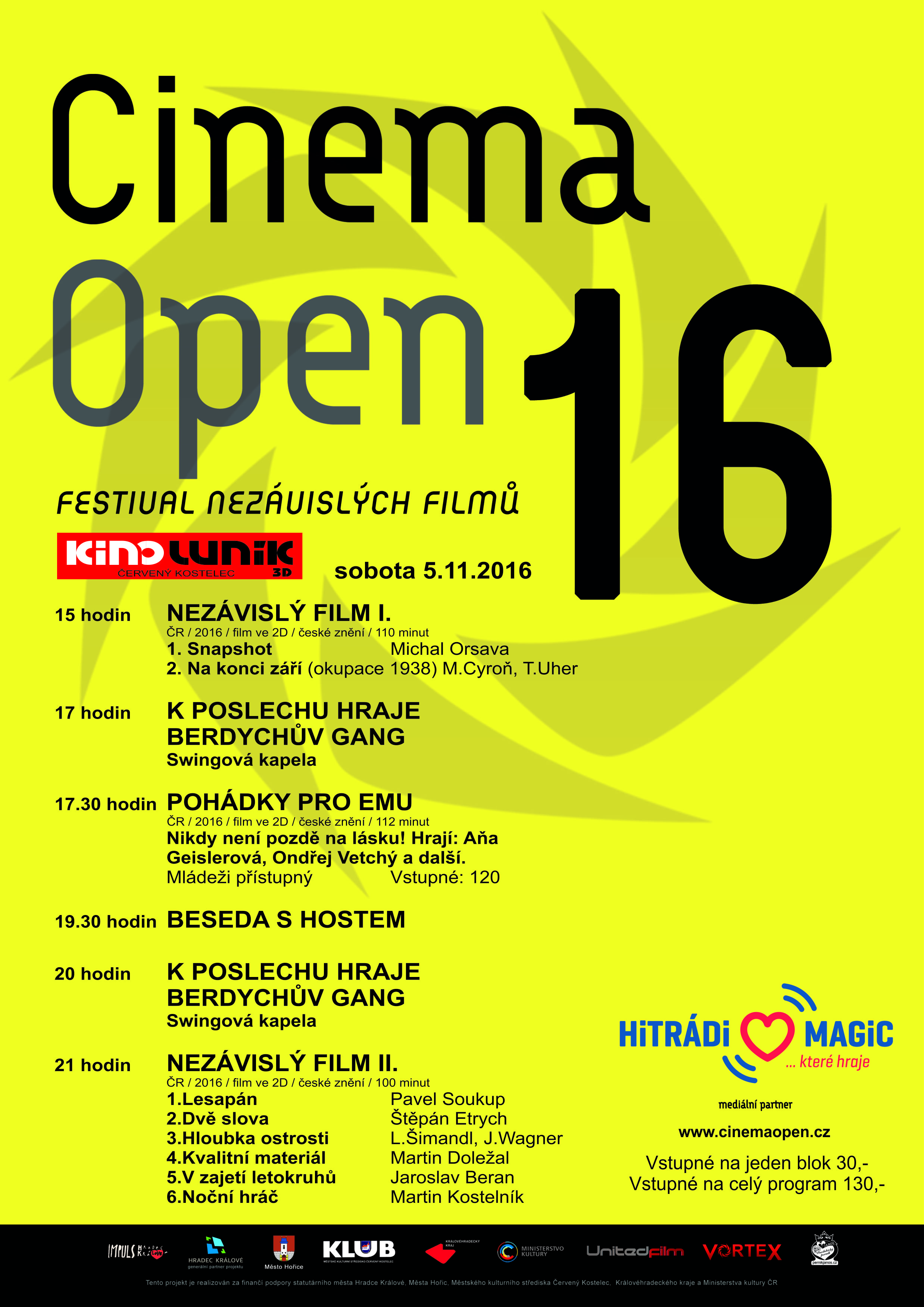 Cinema Open 2016 aneb festival nezávislých filmů poprvé v Červeném Kostelci (5.11.2016)