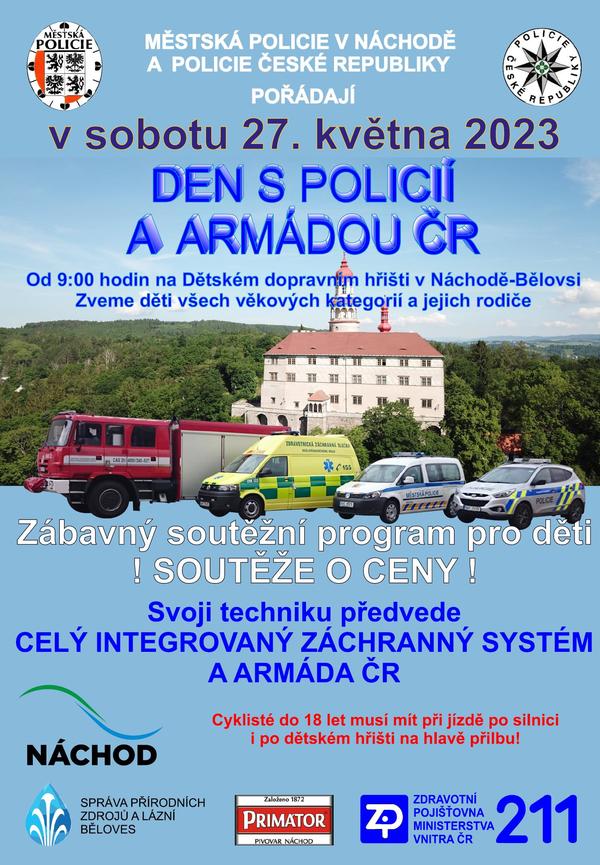 Srdečně zveme všechny malé i velké zájemce v sobotu 27. května 2023 od 9 hodin na Dětské dopravní hřiště v Bělovsi, kde proběhne další ročník zábavného soutěžního dopoledne pro děti tentokrát pod názvem Den s Policií a Armádou ČR.
