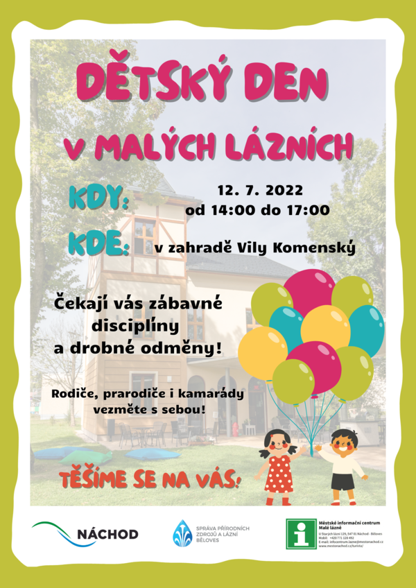Město Náchod a Městské informační centrum Malé lázně vás srdečně zvou na Dětský den v Malých lázních Běloves.