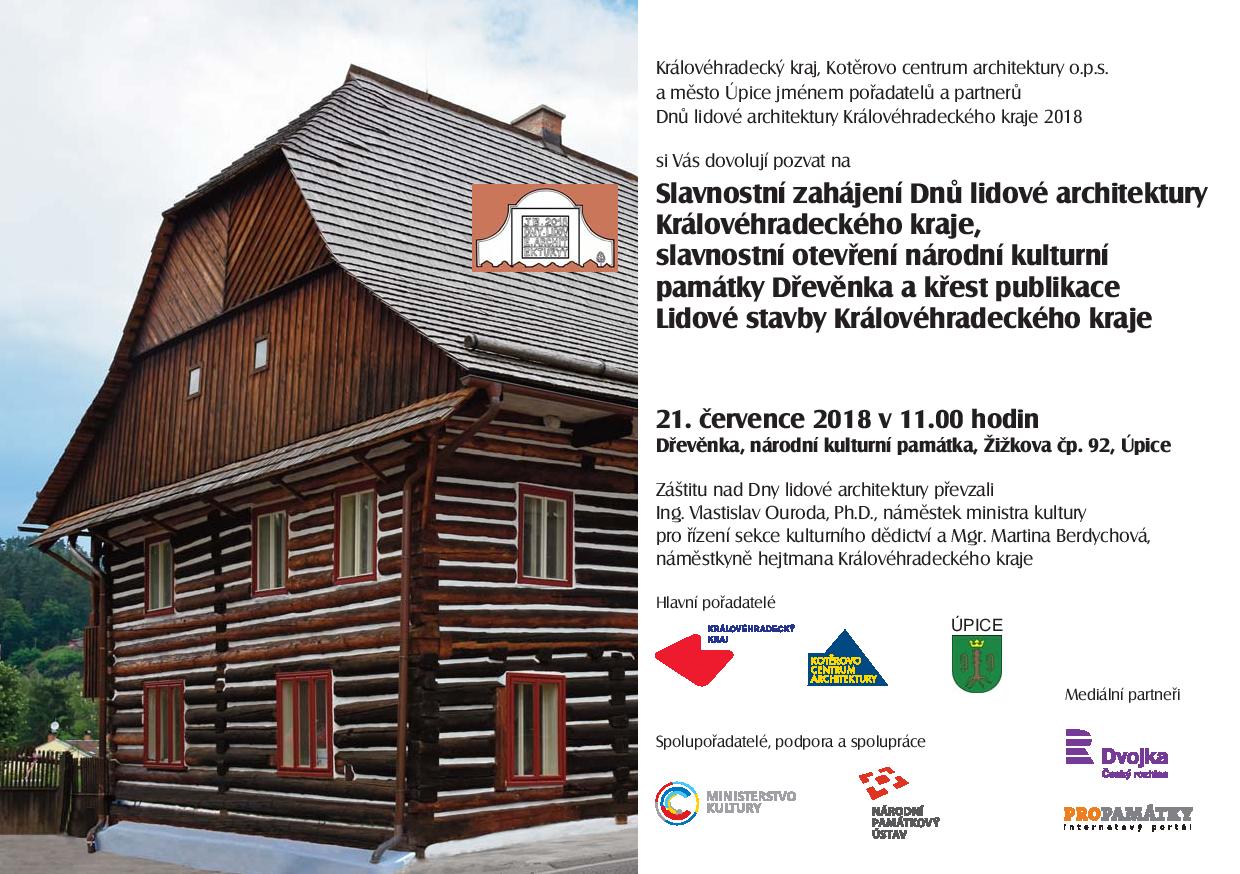 Město Úpice, NPÚ, Královéhradecký kraj srdečně zvou na slavnostní otevření Národní kulturní památky Dřevěnka.