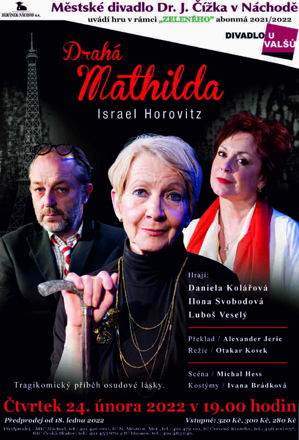 Divadelní představení v rámci "ZELENÉHO" abonmá 2021/ 2022. Uskuteční se ve čtvrtek 24. února 2022 od 19:00 hodin v Městském divadle Dr. J. Čížka.
