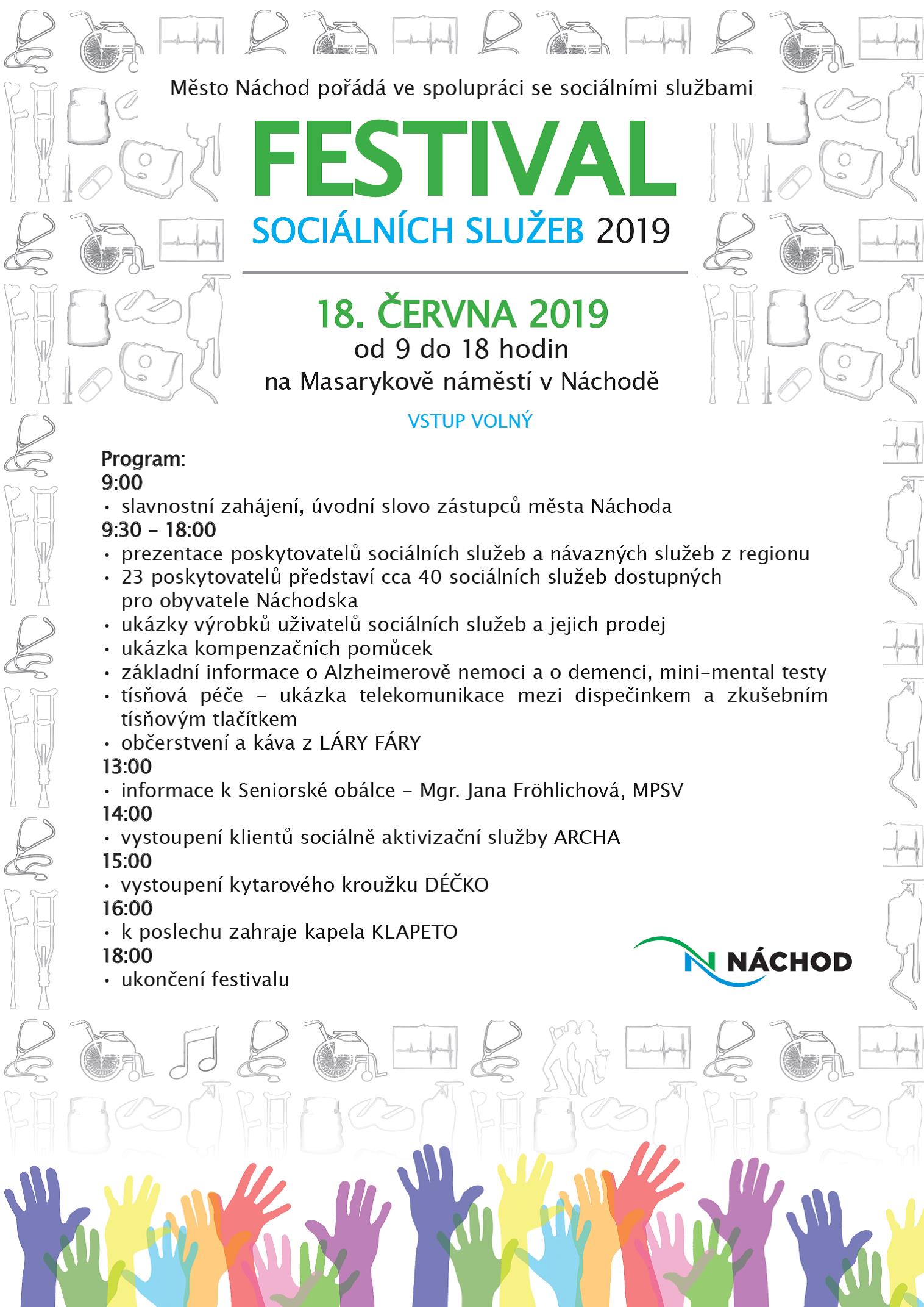 Město Náchod pořádá ve spolupráci se sociálními službami Festival sociálních služeb 2019, který se uskuteční 18. června 2019 od 9 do 18 hodin na Masarykově náměstí v Náchodě.