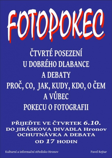 Fotopokec povede opět iniciátor a duchovní otec této již tradiční hronovské akce, Pavel Rejtar.