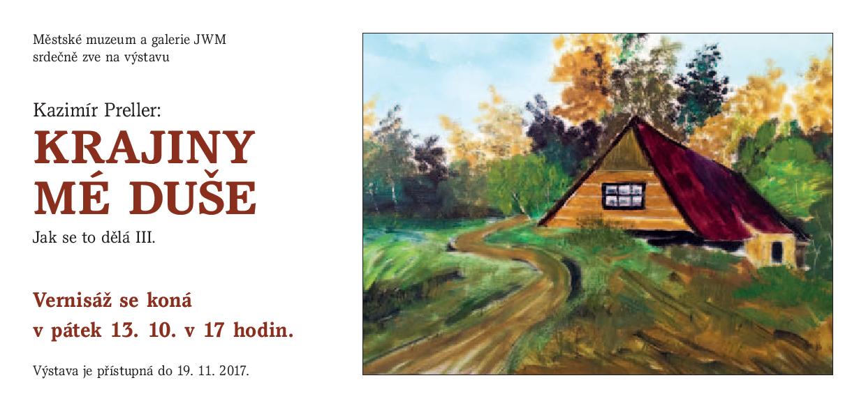 Městské muzeum a galerie JWM srdečně zve na další, již třetí výstavu z cyklu Jak se co dělá. Letos bude Galerie JWM ve 2. patře úpického muzea hostit výtvarné dílo pana Kazimíra Prellera, který se věnuje především krajinomalbě. Krajiny své duše představí na vernisáži v pátek 13. 10. již tradičně v 17 hodin.