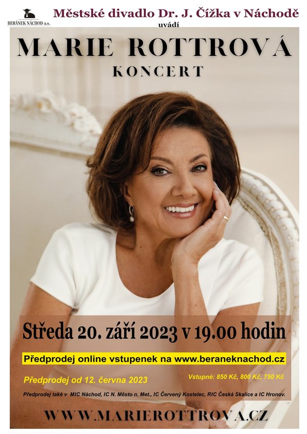 Ve středu 20. září 2023 se od 19 hodin uskuteční v Městském divadle Dr. J. Čížka v Náchodě koncert Marie Rottrové a jejího hosta Petra Němce.