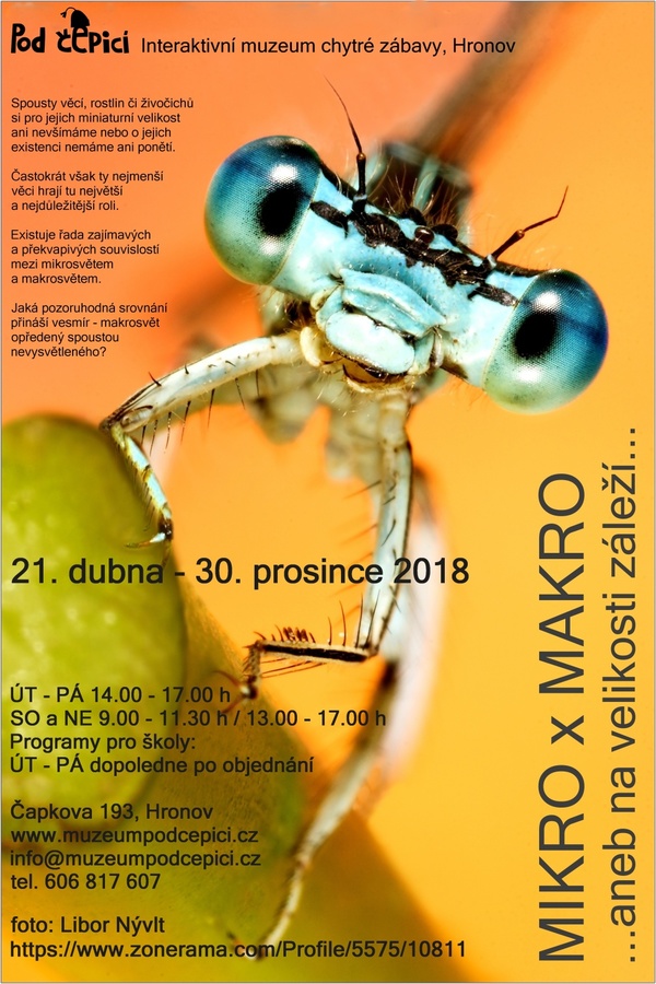 Mikro x makro - Muzeum Pod čepicí 21. 04. 2018 - 31. 12. 2018 více informací na: www.muzeumpodcepici.cz