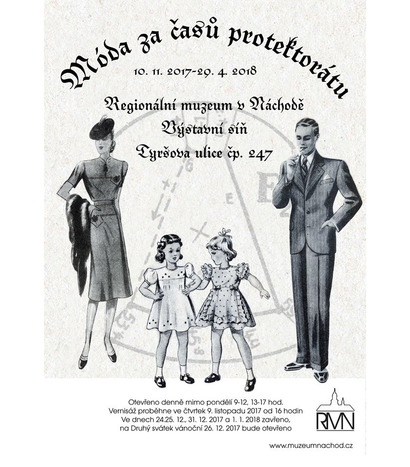 Regionální muzeum v Náchodě Vás srdečně zve na výstavu "Móda za časů protektorátu". Expozici bude možné navštívit denně kromě pondělí od 9 do 17 hodin ve Výstavní síni v Tyršově ulici.