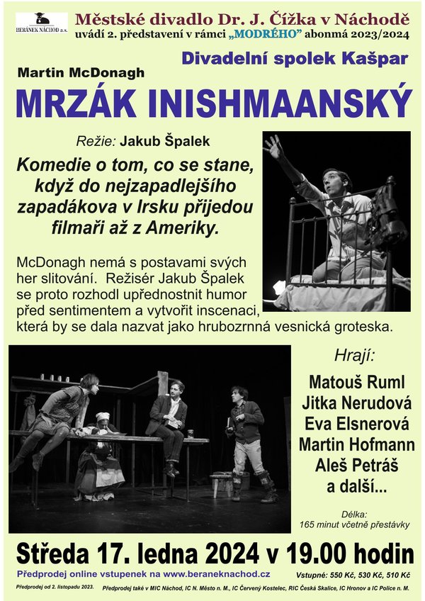 2. představení v rámci „MODRÉHO" abonmá 2023/2024 se uskuteční ve středu 17. ledna 2024 od 19 hodin v Městském divadle Dr. Josefa Čížka.