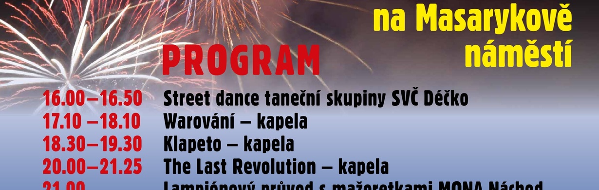 - 21:00 Lampionový průvod s mažoretkami MONA Náchod a Dechovým orchestrem ZUŠ Náchod - vychází z ulice Českoskalická od České pošty ve starém Městě