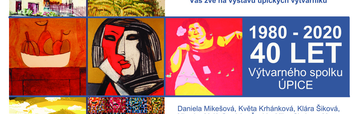 40 let výtvarné skupiny Úpice 06. 06. 2020 - 28. 06. 2020 40 let výtvarné skupiny Úpice.Svoji tvorbu představí současní i bývalí členové skupiny a její příznivci.