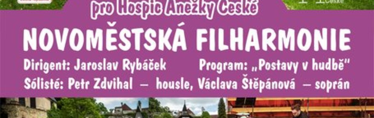 Ve prospěch Hospice Anežky České benefičně vystoupí NOVOMĚSTSKÁ FILHARMONIE se svým pořadem „JMÉNA POSTAV V HUDBĚ“. Hrdinové z děl Carmen, Don Giovanni, Vilém Tell, Samson a Dalila, Faust a Markéta, Richard III. apod. ožijí ve špičkovém provedení tohoto symfonického uskupení. Milovníci filmové hudby si přijdou na své při poslechu hudby z filmu Forrest Gump aj. Hosty večera budou houslista Symfonického orchestru českého rozhlasu Petr Zdvihal a sopranistka Teplické konzervatoře Václava Štěpánová. Filharmonii zkušeně řídí Jaroslav Rybáček.