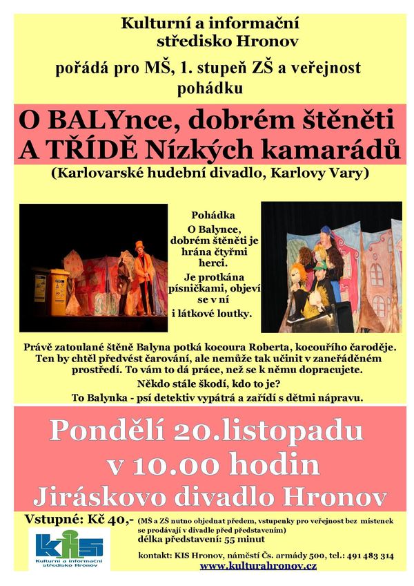 Pro děti z 1. stupně ZŠ, ale je přijatelná i pro předškolní děti - JIRÁSKOVO DIVADLO Hronov.
