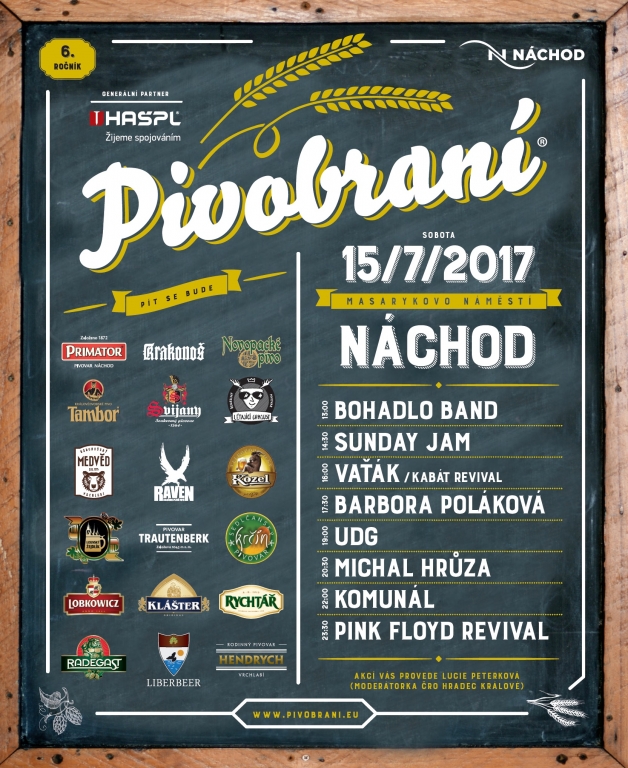 Zveme vás na 6. ročník Pivobraní, které se koná 15. července 2017 na Masarykové náměstí v Náchodě.