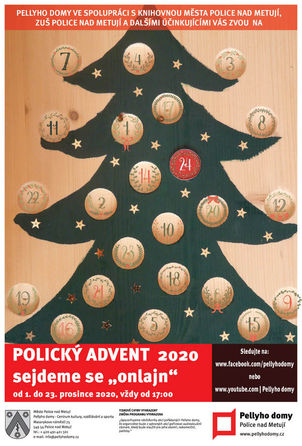 Každý den až do 23. 12. vždy v 17 hodin naleznete na facebookovém profilu Pellyho domy a na YouTube kanále Pellyho domy jedno kulturní překvapení. Zkraťte si s námi čekání na Ježíška a zpestřete si prosincové adventní dny. :-)