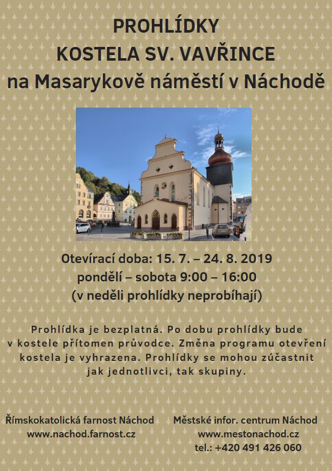 Od 15. července do 24. srpna je pro veřejnost otevřen kostel sv. Vavřince na Masarykově náměstí v Náchodě. Návštěvníci mohou využít bezplatný podrobný výklad přítomného průvodce.