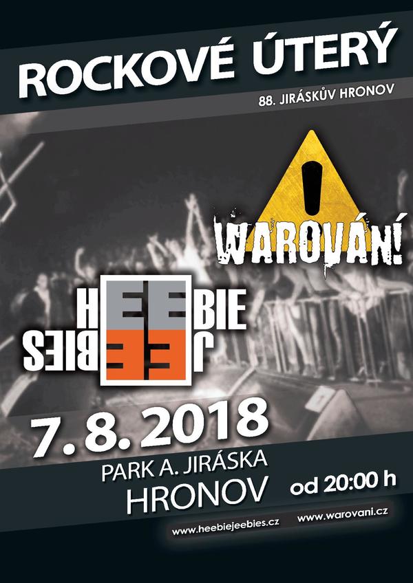 Rockové úterý - 88. Jiráskův Hronov 07. 08. 2018 - 07. 08. 2018 více informací na www.jiraskuvhronov.eu Soubory ke stažení Warovani a Heebie Jeebies A3.pdf