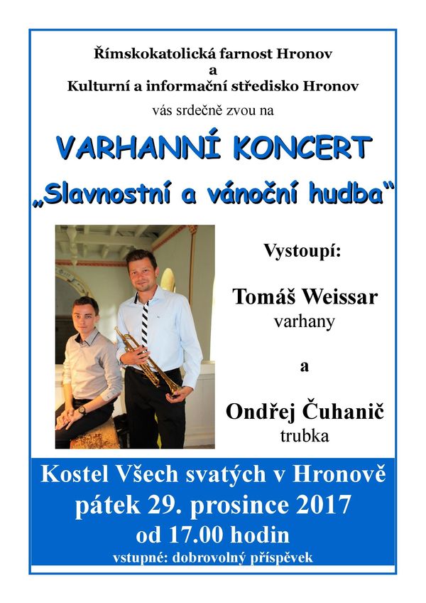 Slavnostní a vánoční hudba - Čuhanič a Weissar 29. 12. 2017 - 29. 12. 2017 Soubory ke stažení varhanní koncert 29.12.2017.pdf