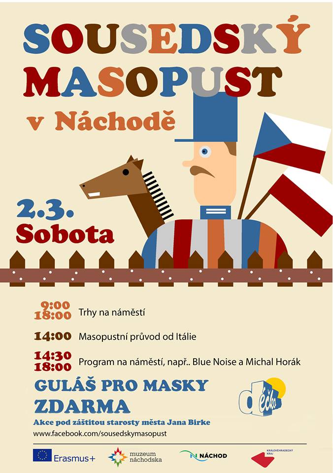 SVČ Déčko Náchod pod záštitou starosty města Náchoda Jana Birke pořádá Sousedský masopust, a to v sobotu 2. března 2018 od 9 hodin.