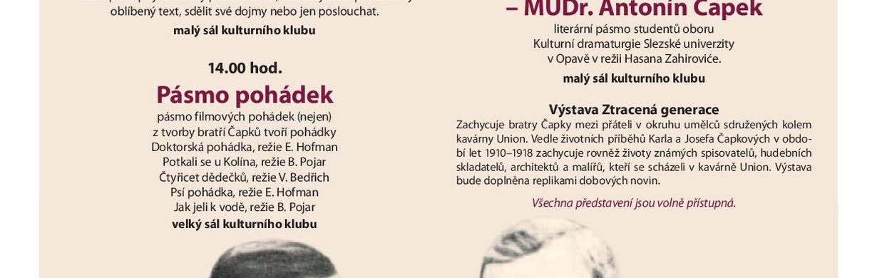 Obec Malé Svatoňovice, Muzeum bratří Čapků a Společnost bratří Čapků Malé Svatoňovice Vás zvou na 13. ročník literárního festivalu STUDÁNECKÁ ČAPKIANA.