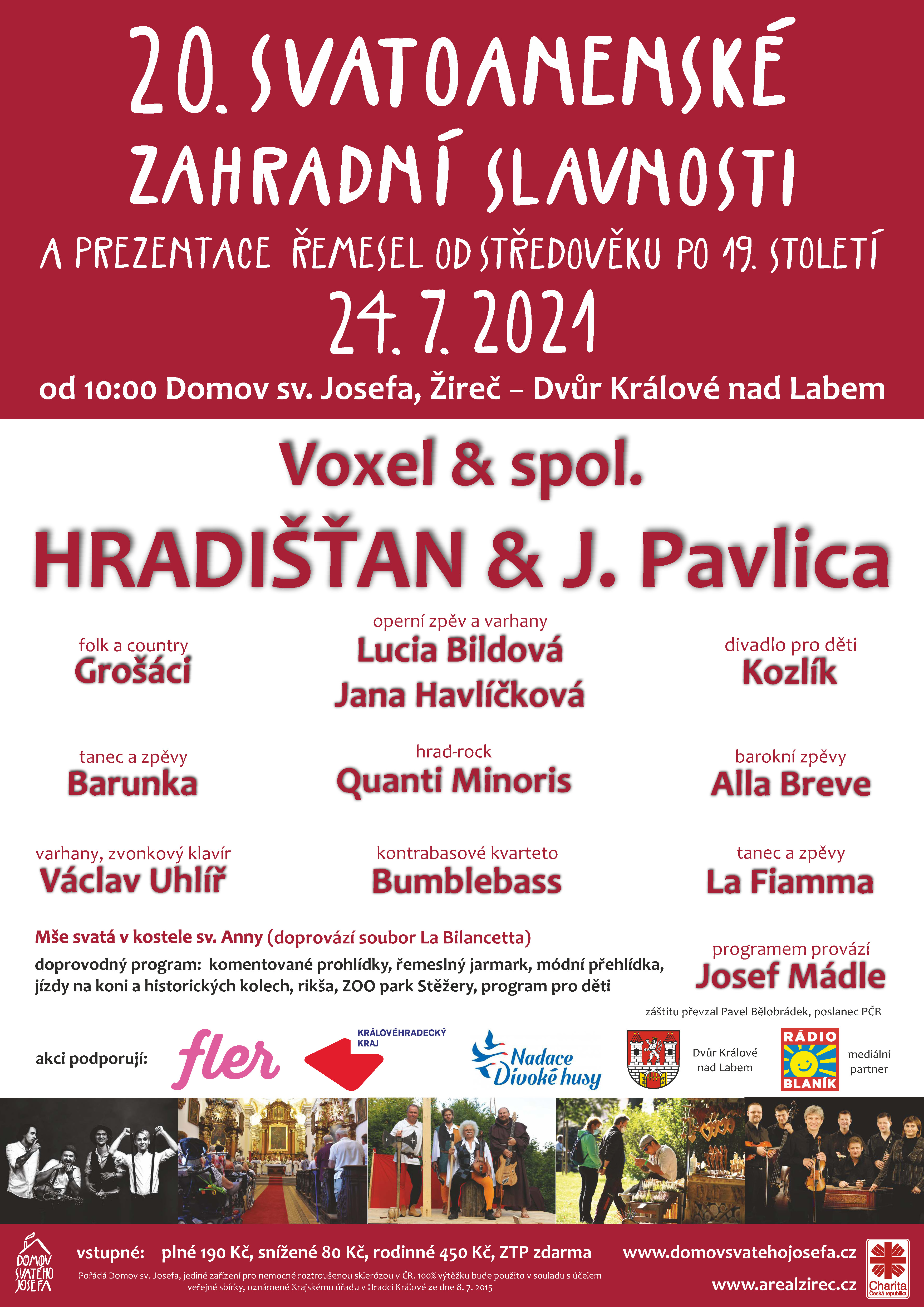 Vstupné: Výtěžek z těchto slavností putuje na dofinancování terapeutické péče v Domově sv. Josefa, a napomůže tak k lepší soběstačnosti lidem s roztroušenou sklerózou.