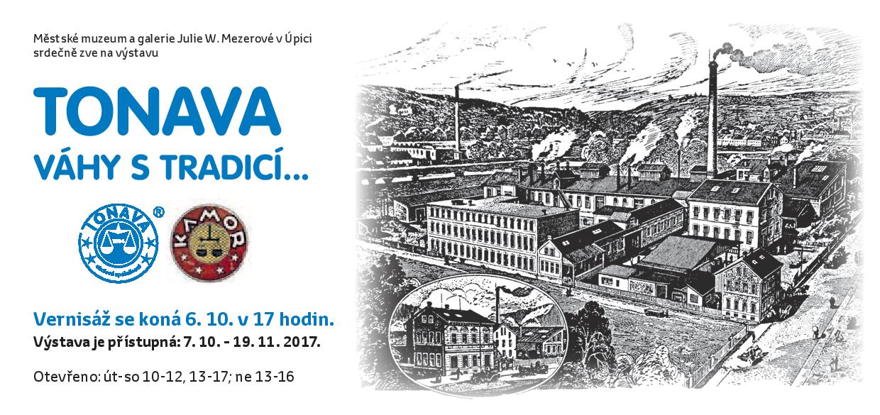 Městské muzeum a galerie JWM srdečně zve na velkou podzimní výstavu, která je letos věnována jednomu z úpických průmyslových fenoménů - výrobě vah. Výstava provede návštěvníky bohatou historií firmy, nabídne vzpomínky na doby dávno i nedávno minulé a představí moderní úpickou TONAVU, která má dnes stejně jako v dobách "starého fabrikanta" pana Karla Morawtze stále co nabídnout - Úpici i světu. Zveme Vás na dobrodružnou cestu do dob firem Karel Morawetz a spol., Jan Havel, továrna na váhy značky Kamor, Tonava a Transporta, do současného podniku Tonava, a. s. a do minulosti i současnosti (nejen) vahařského řemesla. Výstava je připravena ve spolupráci s podnikem Tonava, a. s. a s panem Miroslavem Moravcem, majitelem Muzea - Váhy Humpolec.