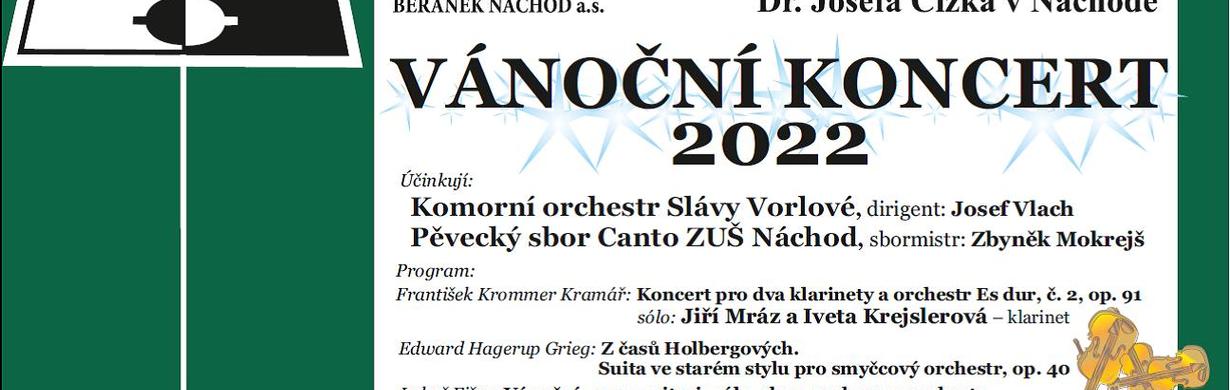 Vánoční koncert se uskuteční v pondělí 19. prosince 2022 od 19 hodin v Městském divadle Dr. J. Čížka v Náchodě.