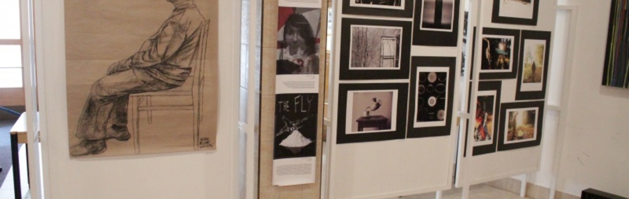 Studenti Střední školy propagační tvorby a polygrafie Velké Poříčí vystavují svou tvorbu ve foyeru Sálu Josefa Čapka v Hronově.