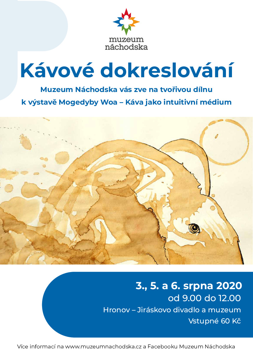 Muzeum Náchodska zve všechny tvořivé duše na workshop konající se k výstavě obrazů Mogedyby Woa – Káva jako intuitivní médium. Přijďte si během konání festivalu Jiráskův Hronov vyzkoušet tvorbu obrazů technikou, kterou použila i sama autorka výstavy Hana Rummelová alias Mogedyby Woa. Čekat na vás bude připravený podklad, který si sami dotvoříte pomocí tuše či fixů. Výsledný obrázek vám muzejní lektorka zalaminuje, čímž z vašeho tvoření vznikne líbivá vzpomínka. Autorka výstavy bude u workshopu přítomna, takže se můžete těšit na cenné rady při tvorbě a komentovanou prohlídku, kde se dozvíte o podhoubí vzniku obrazů.