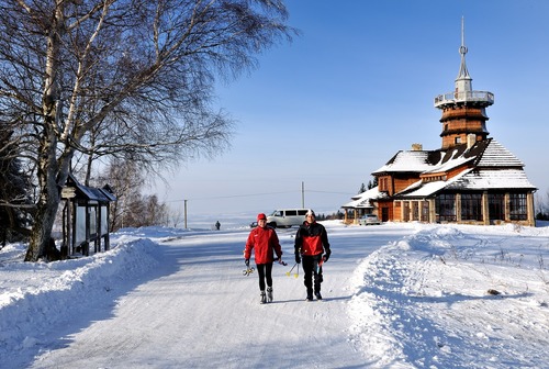 Die Aussichtsplattform der Jirásek-Wanderhütte liegt auf 15 Metern Höhe und bietet schöne Blicke auf das Umland auf der tschechischen und polnischen Seite.