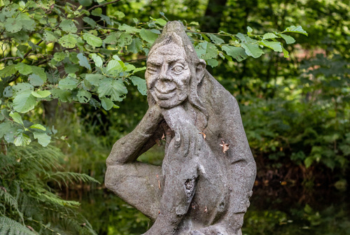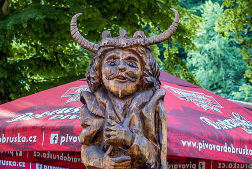 Celé Peklo hlídá dřevěný čert a u rybníka za Bartoňovou útulnou - restaurací sedí kamenný vodník.